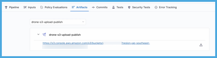 For artifacts uploaded through Upload Artifacts steps, use the Bucket, Target, and artifact name specified in the Upload Artifacts step.