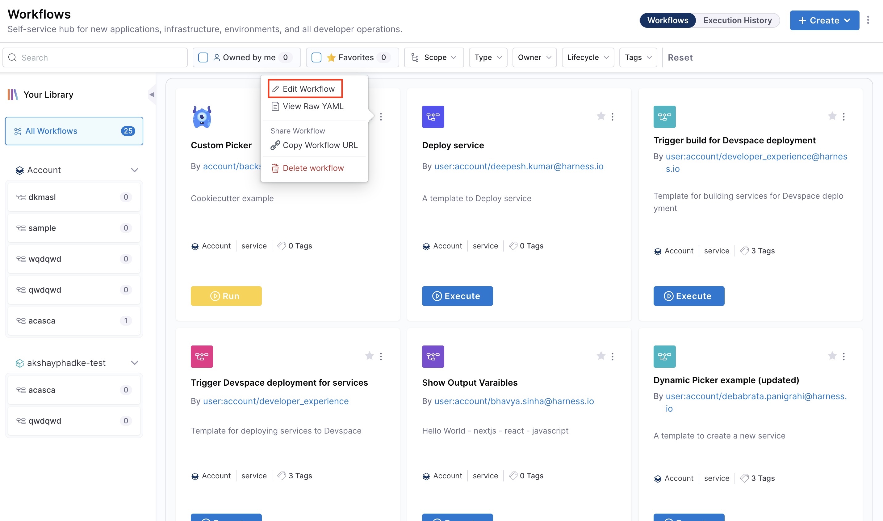 Managing Workflows in Harness IDP