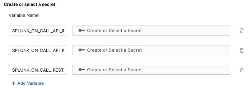 Since the SPLUNK_ON_CALL_API_ID and SPLUNK_ON_CALL_API_KEY variable is used in the application configuration, you must generate a Splunk API key and add the secrets. For instructions on how to create an API ID and an API Key, read the instructions. You also need to provide a REST Endpoint as SPLUNK_ON_CALL_REST_ENDPOINT, to enable the REST Endpoint integration, go on https://portal.victorops.com/ inside Integrations > 3rd Party Integrations > REST – Generic. You can now copy the URL to notify: <SPLUNK_ON_CALL_REST_ENDPOINT>/$routing_key