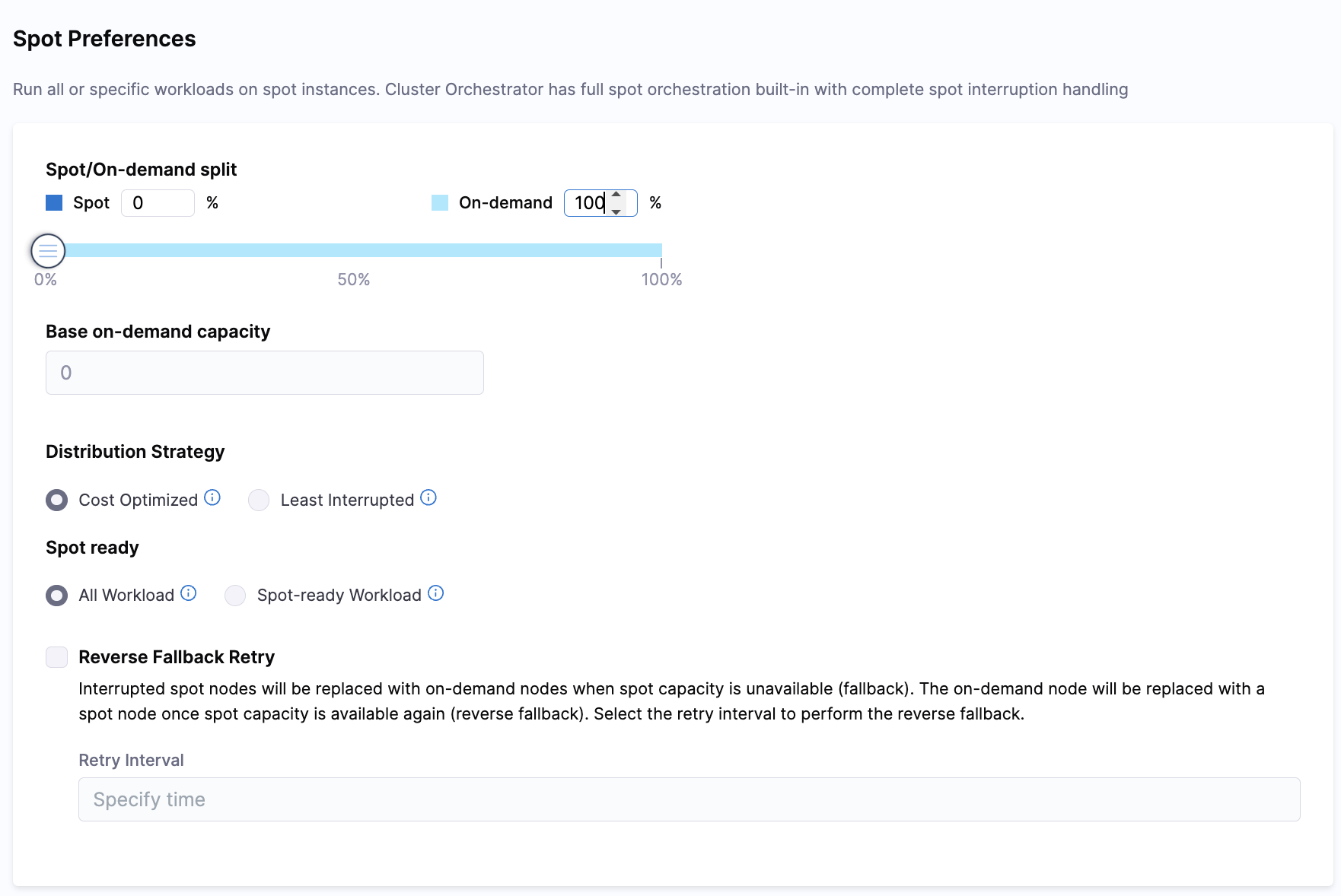 Cluster Orchestrator Setup Flow Improvement: We have made a minor improvement to the setup flow of the Cluster Orchestrator. After selecting Cluster Preferences, the workflow will now proceed to Spot Preferences, followed by Replacement Schedules, and finally to the Finish stage. This adjustment is intended to prevent any oversight in configuring essential settings during the setup process. [CCM-25325]