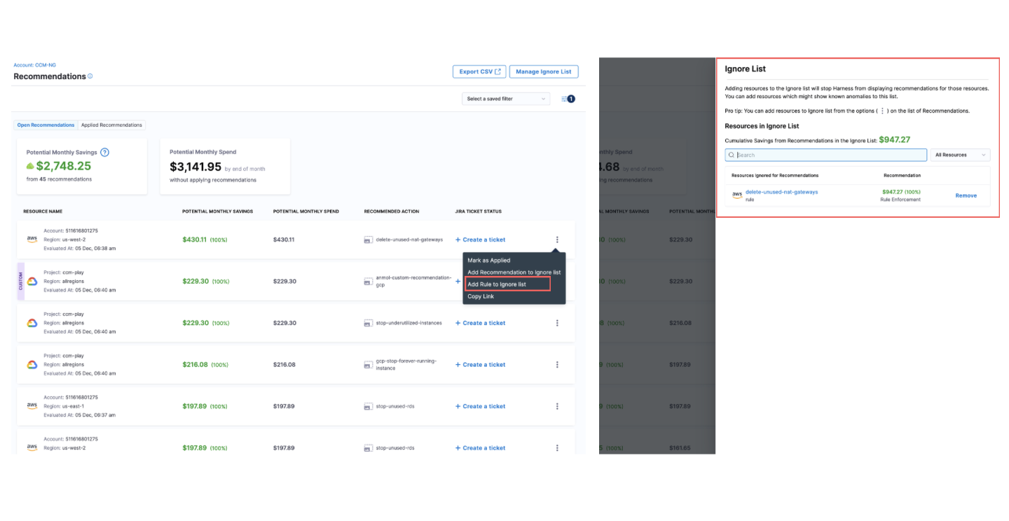 CCM has added new columns in CSV of recommendations when you export CSV, these new columns are: